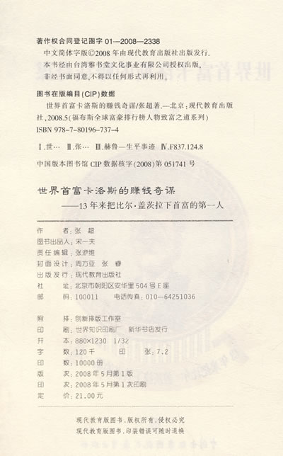 让卡洛斯告诉你投资的真正学问;这位来自第三世界小国的商人:11岁时就做出了人生的第一笔投资;15岁时已经成为墨西哥最大银行的股东;其商业王国的产值占了全墨西哥国民生产总值的5%;其公司的股票市值占了全墨西哥股票市值的40%;现在的他,每小时赚取2,200,000美元;墨西哥的财富何故如此钟情于卡洛斯?他凭着什么能够如此自如地操纵财富,以至于让自己的腰包比比尔·盖茨的还鼓?