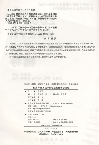 推荐理由 符合2009年全国硕士研究生入学统一考试计算机科学与技术学科联考计算机学科专业基础最新考试大纲。