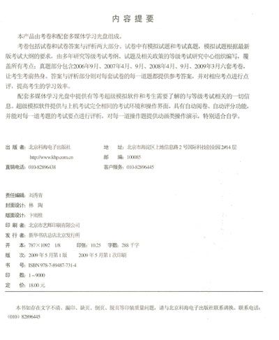 配套多媒体学习光盘中提供有等考超级模拟软件和考生需要了解的与等级考试相关的一切信息。超级模拟软件提供与卜机考试完伞相同的考试环境和操作界面,具有自动阅卷、自动评分功能,并能对每一道考题的考试要点进行评析,对每一道操作题提供动画类操作演示,特别适合自学。