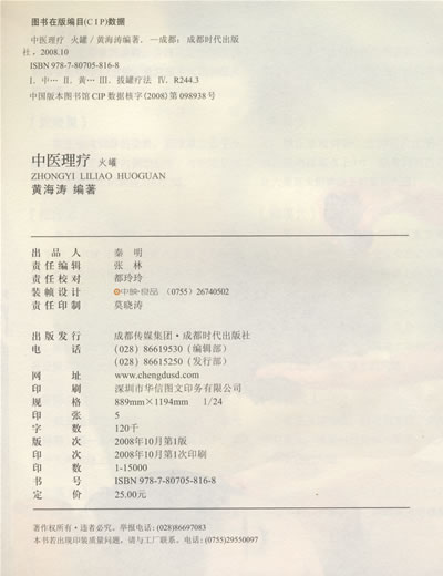 本书介绍的是火罐疗法,也称吸筒疗法,是以罐为工具,通过排除罐内的空气造成负压,使之吸附于人体并对人体产生刺激,达到治疗目的的一种物理性治疗方法。
