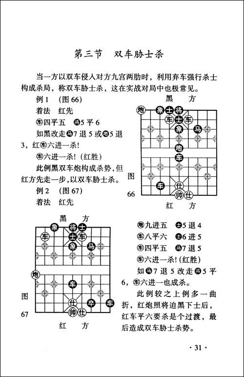 概述 第一章 行棋知识 第一节 棋盘 第二节 棋子 第三节 棋子摆法 第四节 棋子走法 第五节 吃子法 第六节 基本“将”法 第七节 棋步的读法与记法 第八节 胜负和 第九节 子力价值 第二章 基本杀法 第一节 对面笑杀 第二节 双车错 第三节 双车胁士杀 第四节 挂角马杀 第五节 八角马杀 第六节 卧槽马杀 第七节 钓鱼 第八节 侧面虎杀 第九节 列马车杀 第十节 双马饮泉杀 第十一节 马后炮杀 第十二节 重炮杀 第十三节 天地炮杀 第四节 闷宫杀 第五节 闷杀 第十六节 双将杀 第十七节 铁门栓杀 第十八节 二鬼拍门杀 第十九节 大胆穿心 第二十节 三子归边 第二十一节夹车炮杀势 第二十二节海底捞月 第二十三节三车闹士 第三章 基本战术 第一节 捉双 第二节 双重威胁 第三节 闪击 第四节 闪将 第五节 抽将 第六节 引离 第七节 吸引 第八节 堵塞 第九节 拦截 第十节 牵制 第十一节 腾挪 第十二节 封锁 第十三节 借力 第四节 迂回 第五节 交换 第十六节 顿挫 第十七节 等着 第十八节 困子 第十九节 困毙 第二十节 解将还将 第二十一节解杀还杀 第四章 开局要领 第一节 棋盘位置的划分 第二节 开局的基本原则 第三节 违反开局基本原则的实例 第四节 遵循开局基本原则的实例 第五章 开局浅介 第一节 中炮类 第二节 马相兵类 第六章 残局基础 第一节 兵类残局 第二节 马类残局 第三节 炮类残局 第四节 车类残局 第七章 棋局形势判断 第八章 对局选解 附录中国象棋比赛规则 一、1999年版象棋竞赛规则(节录) 二、亚洲象棋比赛规则(节录) 三、循环赛对弈秩序表的使用和编排 四、积分编排制的编排原则和具体方法 ……