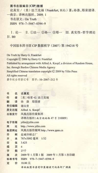 本书是由美国第一社科畅销作家哈里·G.法兰克福所著,是其《论扯淡》的姊妹篇。 在这个“假奶粉”、“假虎照”的年代,到底什么才是“真实”?!《南方周末》、《新京报》等多家媒体热评,诚信社会的必读之书!