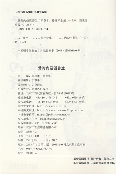 全书内容简洁、说理透彻、通俗易懂、实用性强,是渴望寻求科学养生保健方法的各界人士学习和研究的一本上佳著作。