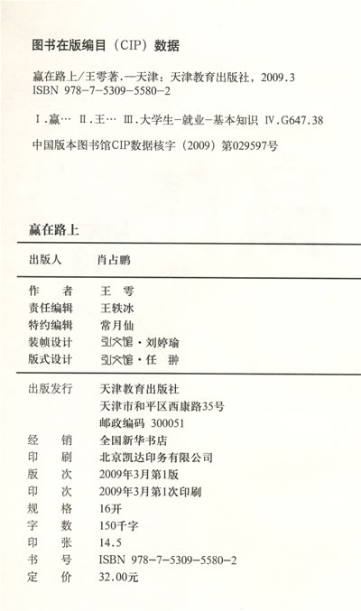 《赢在路上》既是王雩女士对个人传奇经历的回顾,也是她多年销售和管理经验的总结和升华。她将自己多年积累的销售、成功学和人力资源等方面的知识融入到书中,通过一个个精彩的案例和生动的故事展现。 ——万科集团副总裁人力资源总监 解冻 我知道每个故事的背后都饱含着王雩奋斗的辛酸和沉淀下来的宝贵经验,我更知道这些经验对于年轻人来说意味着什么。这样的一本书,对于每个有幸拥有她的人,不是一个巨大的福音么? ——广州时代财富总裁 张静君 本书对于大学毕业生来说,是极其宝贵的经验之谈,为他们解读自己、走出职场第一步提供了全面的帮助;而对于职场中人来说,这更是一本难得的修炼宝典,相信细读之下,必然体悟良多。 ——华东理工大学党委副书记 沈炜 让王雩获得不平凡成功的因素很多,其中有三点是非常明显的,而且是非常与众不同的。第一,激情满溢;第二,精心准备;第三,精益求精。《赢在路上》这本书,给我们展示了这三个因素在成功路上的重要性。我相信,只要人们具备了这三个方面的其中一个,就可以让你开始“赢在路上”。而三个方面同时具备,同时锤炼,假以时日,就可以“与大师们同行”了。 ——著名国外企管畅销书翻译家 赖伟雄 打开你的心,好好感悟那些故事、事件、对话和技巧背后精密思维方式以及极其乐观的人生态度,一定能让你牢牢掌控住人生的航向,使你成功的速度倍增。 ——中德国际CFT人力发展机构总教练 郑伟民