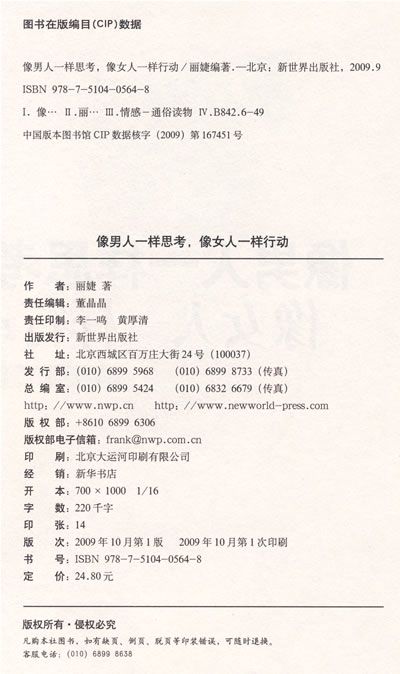 如果你正要去约会,并且希望迅速抓住男人的心,你可以把这本书当成工具书;如果你正处于热恋之中,并且想让这个男人拿着戒指向你求婚,你可以把这本书当成工具书;如果你已经结婚,但你已经厌倦了被当成玩偶,你也可以把这本书当成工具书……但太多的女人对男人一无所知,很多男人结束一段感情后无奈地离开,因为女人根本不了解他们。有了本书,你就能进入到男人的思想世界里,更好地了解他们的心理,这样,你就能实现自己的梦想和渴望。更重要的是,你能够洞悉这个男人究竟是真的想和你在一起,还是玩玩而已。