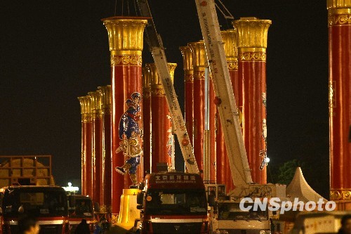 【江苏发行网】12月3日凌晨,北京天安门广场上象征民族大团结的56根民族团结柱,经北京住总集团等单位的施工,已从天安门广场全部拆除,进行回厂维护。国庆六十周年庆典期间,分列在天安门广场两侧的民族团结柱受到全国各族人民的喜爱,成为节日一道亮丽的风景。为了永久留存这56根民族团结柱,北京市政府决定将它们拆除迁移回厂,进行妥善维护后再择地安放。中新社发