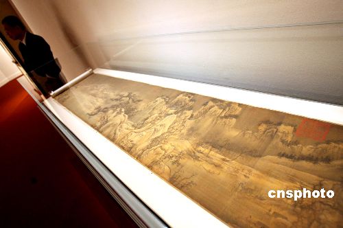 资料图:庆祝香港特别行政区成立十周年的重点节目─《国之重宝-故宫博物院藏晋唐宋元书画展》2007年6月28日晚在香港艺朮馆开幕﹐展出的珍品包括举世知名的《清明上河图卷》以及三十一帧国宝级书画名迹。据介绍﹐《清明上河图卷》此前只出故宫两次﹐此次特来香港展出﹐体现中央政府对特区回归十周年的重视。【江苏发行网 http://www.jsfxw.com/】