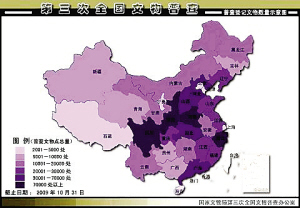 各省、自治区、直辖市实地文物调查总量示意图(截至2009年10月31日)