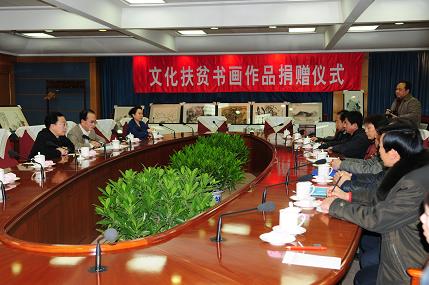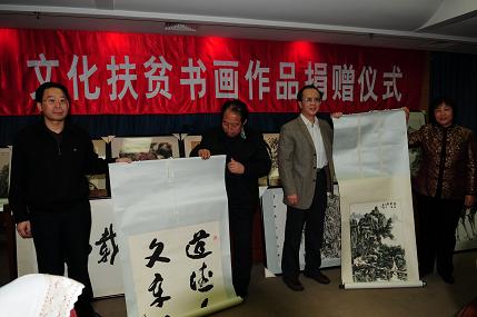 自1995年国务院扶贫开发领导小组办公室将山西省娄烦、静乐两个县明确为文化部定点帮扶县以来,文化部一直致力于立足文化资源优势开展扶贫工作,策划了许多项目和活动。2007年,经协调中国国家画院,文化部组织一批画院艺术家亲赴山西省娄烦县、静乐县实地考察调研,返京后他们先后创作了36副书画作品。2008年画院将全部作品移交部定点扶贫办公室。在故宫博物院的协助下,部扶贫办已经将书画作品全部装裱完毕。