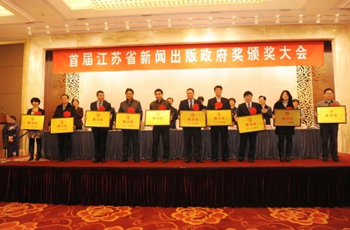 2月26日,由中共江苏省委宣传部、省新闻出版(版权)局、省财政厅、省人力资源和社会保障厅共同主办的首届江苏省新闻出版政府奖在南京颁奖。副省长曹卫星出席颁奖大会并讲话。省委宣传部常务副部长章剑华宣读表彰决定。省新闻出版(版权)局党组书记、局长徐毅英主持会议。省人力资源和社会保障厅副厅长、省公务员局局长周广侠,省新闻出版局领导沈建国、蒋国星、曹玉梅、陆湘琳出席,并为获奖代表颁奖。
