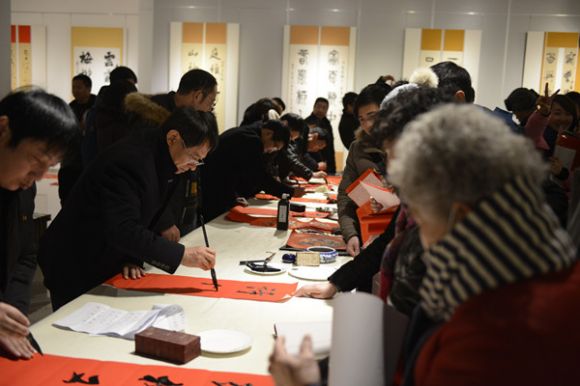 1月28日,“宿迁市书画家新春对联展”在市博物馆举办,展览展出宿迁籍69位书法家近百幅书法对联精品。当日上午,仲向阳、孙冲、朱志刚、张守跃、刘瑞等16位书法家在展览展厅现场为前来参观的市民题写1000余幅春联,博物馆内充满了欢乐喜庆浓浓的年味。
