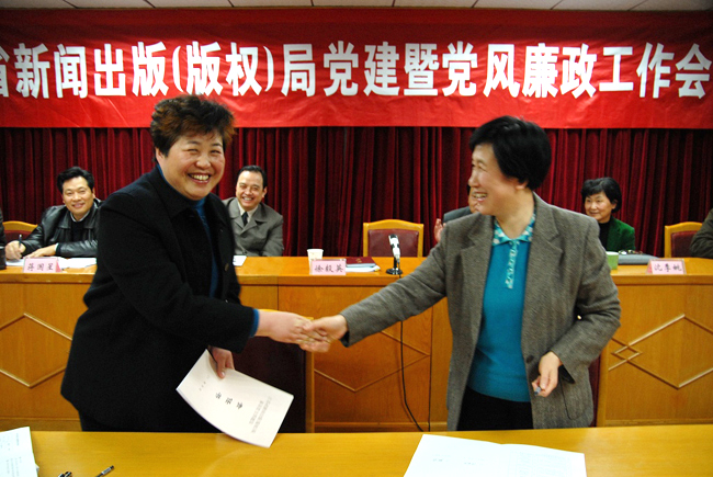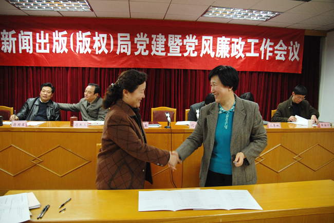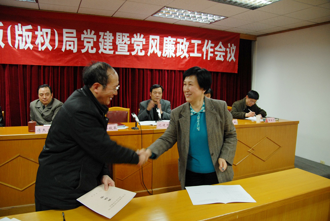 2月24日,省新闻出版(版权)局召开机关党建暨党风廉政工作会议,深入学习贯彻省委十一届五次全会、省级机关作风建设会议、省级机关第十三次党的工作会议精神,总结2008年机关党的工作和党风廉政建设情况,布置2009年工作。会上,局党组书记徐毅英同志作了重要讲话,并与各支部(总支)书记签订“一岗双责”责任书。局机关全体同志和直属单位领导班子成员参加了会议。