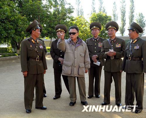 这张朝鲜中央通讯社6月14日播发的照片显示,朝鲜最高领导人金正日(中)近日视察人民军第七步兵师指挥部。新华社/朝中社