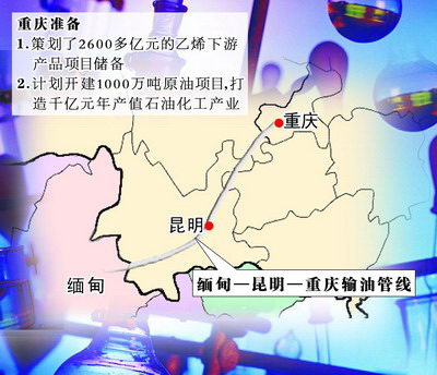 资料图片:中缅原油管道示意图。图片来源:重庆商报