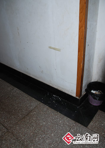 昆明震感强烈,地面散落震下的墙灰。图片来源:云南网