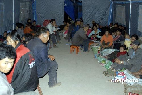 图为受灾最为严重的官屯乡官屯村灾民,在当地官屯小学搭建的临时安置点渡过震后的第一夜。 中新社发 保旭 摄
