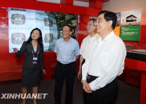 7月15日,中共中央总书记、国家主席、中央军委主席胡锦涛在北京参观“走进世博会——中国2010年上海世博会暨世博会历史回顾展览”。新华社发