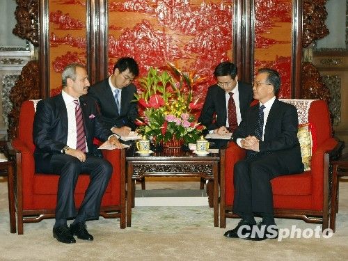 8月31日,中国国务院总理温家宝在北京中南海紫光阁会见了土耳其总理特别代表、国务部长恰拉扬。 中新社发 盛佳鹏摄