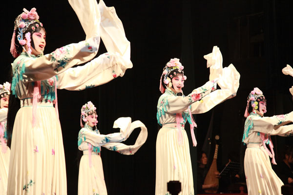 六位美貌昆曲花神载歌载舞开场欢迎来自全国各地的诗人们。