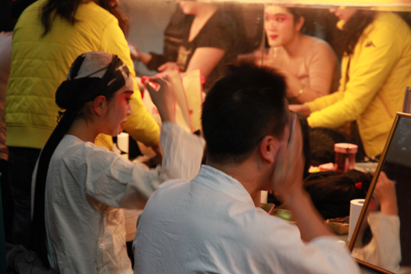 江苏省昆剧院的演员们在后台化妆候场